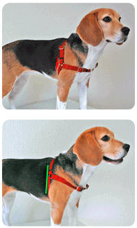 Geschirres zu befestigen, sodass Sie oben am Rücken einen Leinenring haben (siehe Bild).