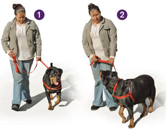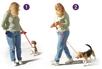 ziehen Sie die Leine weg von Ihrem Hund und hin zu sich nach rechts