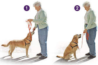 Wenn sich Ihr Hund nun hinsetzt, lockern Sie die Leine – belohnen und loben Sie ihn!